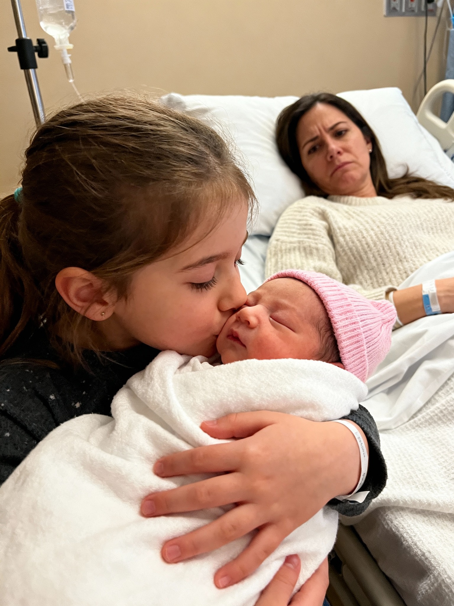 Mi hija de cinco años susurró esto mientras sostenía a su hermana recién nacida en el hospital, y en ese instante de silencio, algo fundamental en mi matrimonio comenzó a fracturarse de una manera que ya no podía ignorar.