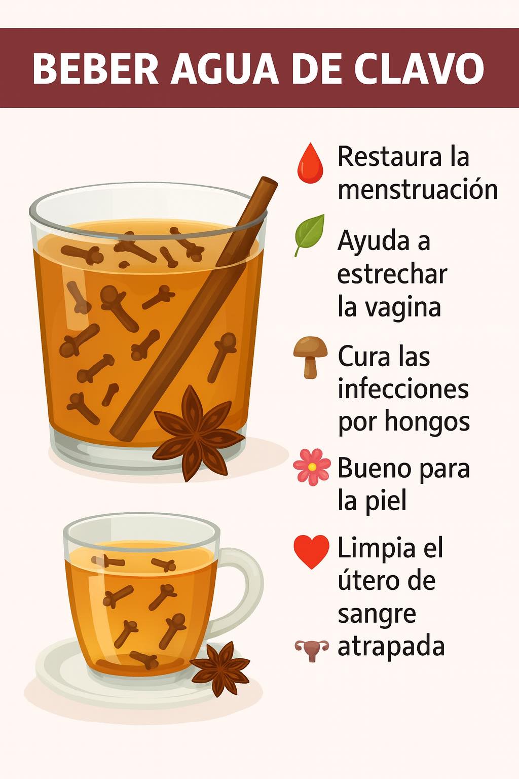 El agua de clavo —cuando se consume y se usa de manera externa en baños íntimos— ayuda a tonificar los tejidos vaginales, gracias a sus propiedades: