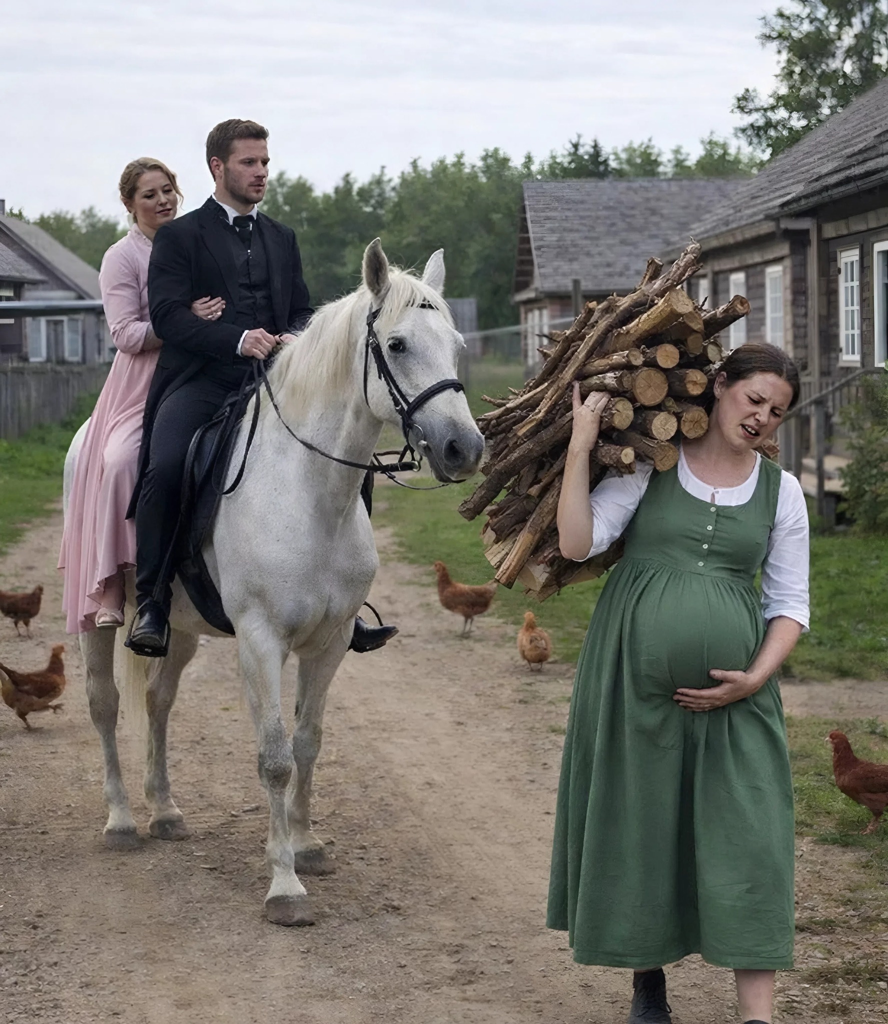 Apoyó la leña en el suelo con cuidado, protegiendo su vientre con una mano firme, aprendida tras meses de hacerlo sola.