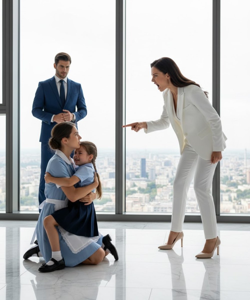 En el pasillo, una mujer rubia con maquillaje perfecto y ropa elegante salió de una habitación, cerrando la puerta de un portazo tras ella.