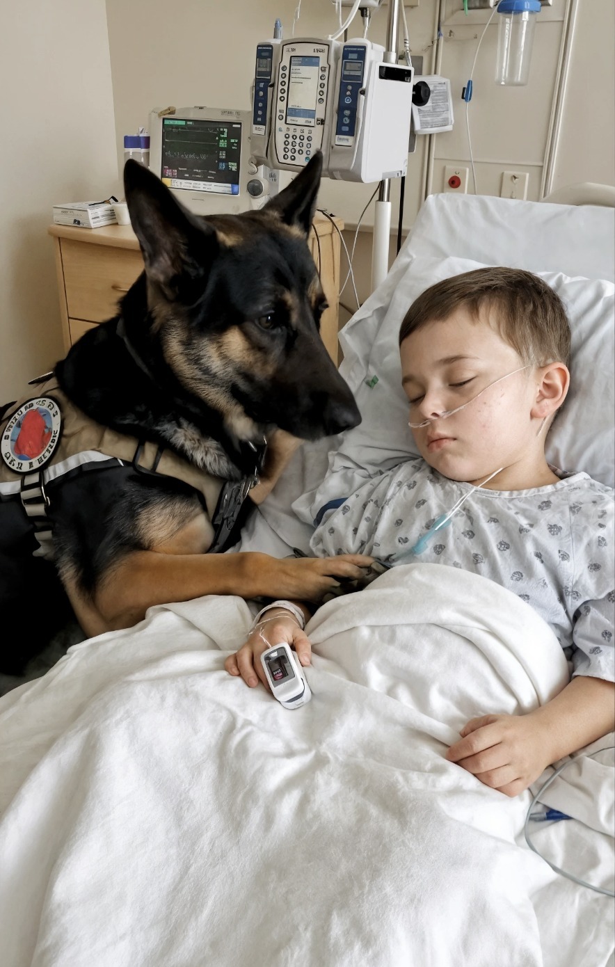 No se permitían animales en cuidados intensivos. Sin embargo, un día, una enfermera vio al perro, con la cabeza apoyada en el suelo frío, los ojos entrecerrados por el cansancio. Entonces le susurró al médico, casi en voz baja: