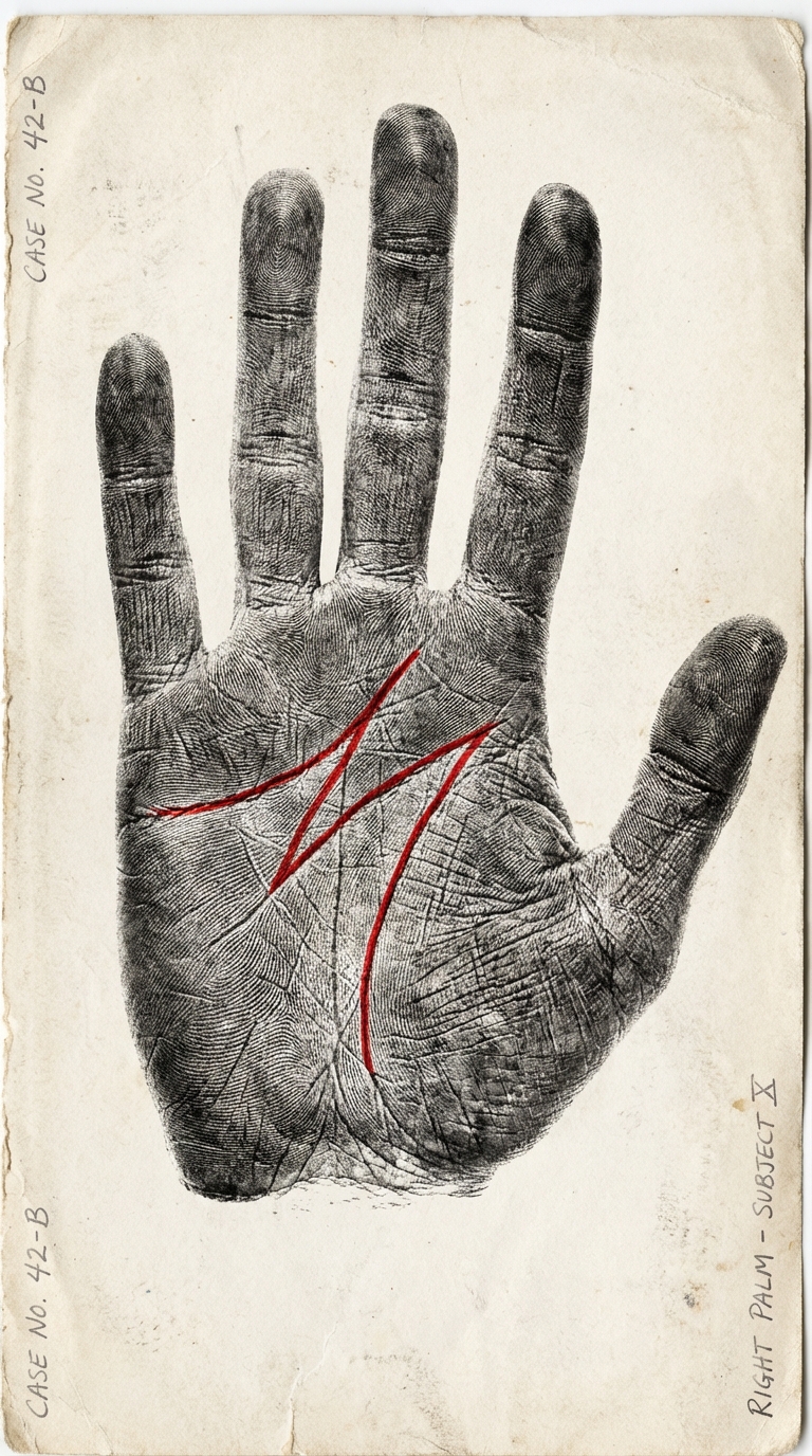 La “M” en la palma de la mano de un hombre