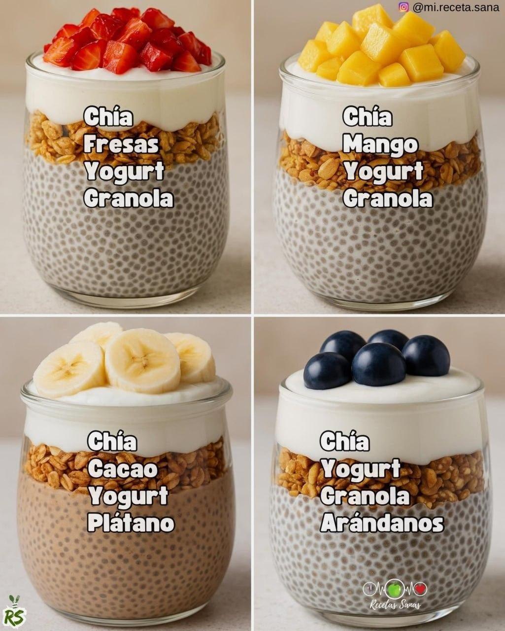 3. En el vaso: coloca la base de chía, luego granola, luego yogurt.