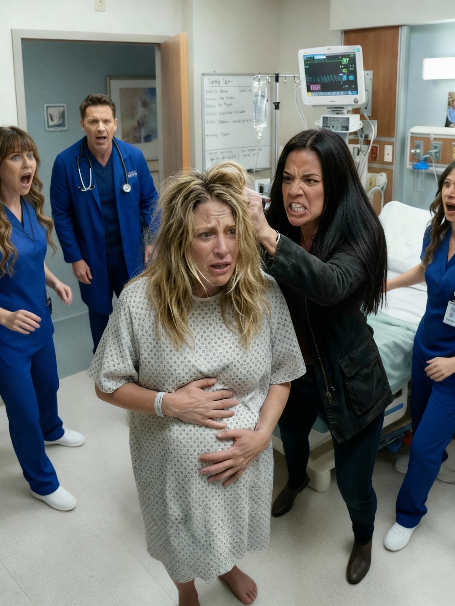 De repente, la puerta se abrió de golpe y dos enfermeras entraron corriendo, gritando para pedir seguridad. Lena retrocedió, respirando con dificultad y con el rostro desencajado por la ira. Una enfermera se interpuso entre nosotras mientras la otra me revisaba rápidamente las constantes vitales.