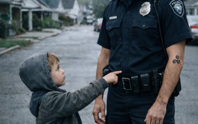 Un niño pequeño señaló el tatuaje del oficial de policía y dijo: "Mi papá tenía el mismo". Era una patrulla matutina tranquila, hasta que el oficial se quedó congelado en el lugar.